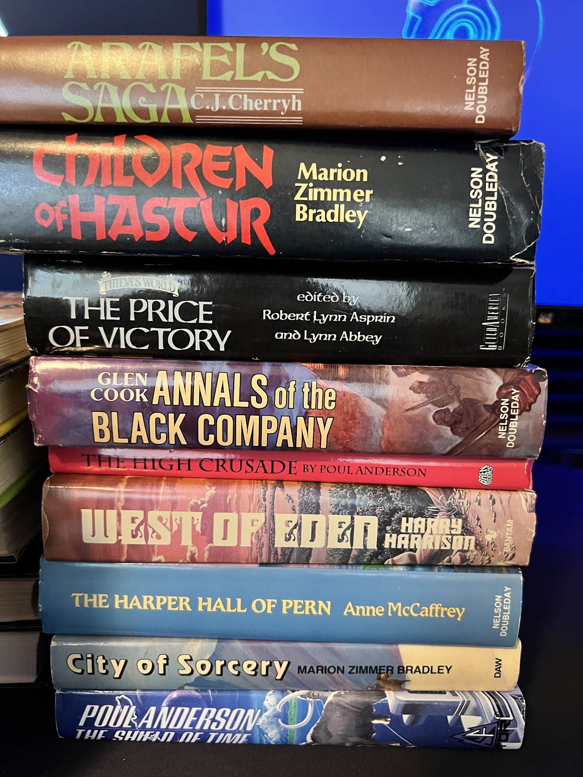 Bins and bins of 80's and 90's modern fantasy and science fiction. Nothing really crazy in terms of value, but if you were looking to complete a lesser known series without hitting ebay, you could easily get that done here. A quick inspection and I only picked out four paperbacks that had a value of over $10, all Timescape novels by Pournelle. Not sure why, but Timescape is really hot right now. I was ready to leave when I decided to just give the hard covers a once over like I always do, and I never expect much to be honest. Hard covers are heavy, take up a ton of space, and the liklihood of me finding anything rare is.. well, rare.